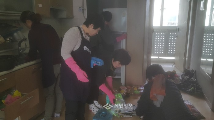 지난 8일 경기 양주시 광적신협두레회에서 지역내 주민을 위해 봄맞이 청소 봉사활동을 실시했다. 사진은 봉사에 참석한 관계자들이 저소득 한부모가정의 집안 청소를 하는 모습.(사진제공=양주시청)