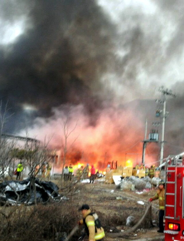 9일 오전 3시30분께 경기도 포천시 선단동의 한 섬유원단 공장에서 불이 나 인근 대형 기도원으로 불이 옮겨 붙었다.