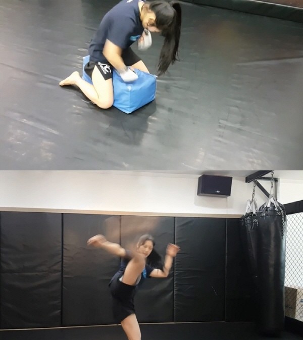 12일 강원도 원주시 치악체육관에서 열리는 샤오미 로드FC 029 대회 48kg 계약체중 경기에서 일본의 시모마키세 나츠키와 대결을 펼치는 이예지는 대회를 앞두고 훈련에 매진하고 있는 모습이 공개됐다.