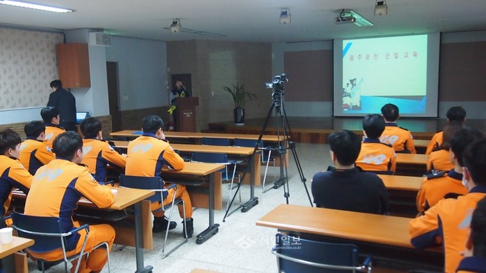 14일 경기 군포소방서는 대회의실에서 전직원이 참석한 가운데 차량안전사고를 방지하고자 안전운행 실천 결의 대회 및 음주운전방지 특별교육을 실시했다.(사진제공=군포소방서)