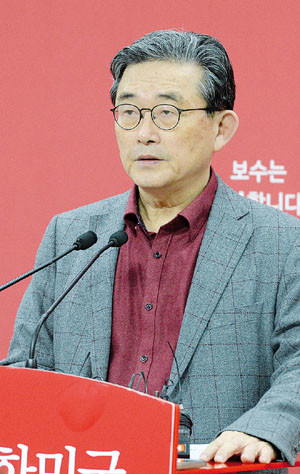 이한구 새누리당 공천관리위원장이 14일 오후 서울 여의도 당사에서 기자회견을 열고 2차 여론조사 경선 결과가 나온 17개 지역구 명단을 공개하고 있다. 안홍준, 정문헌, 이에리사(비례대표) 의원이 경선에서 탈락했다. 새누리당은 이 세명의 의원을 포함해 12명째 현역의원이 공천 탈락했다.