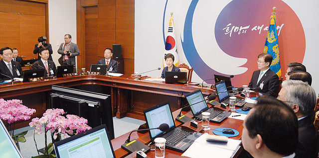 박근혜 대통령이 15일 청와대 위민관 영상회의실에서 열린 제11회 국무회의(영상)를 주재하며 모두발언을 하고 있다.
