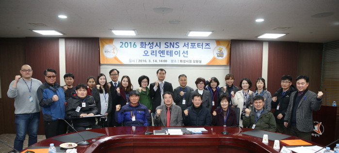 지난 14일 경기 화성시는 61만 시민들에게 생생한 지역 소식을 알릴 '2016년 화성시 소셜네트워크서비스(SNS) 서포터스'의 발대식을 개최했다. 사진은 관계자들이 기념촬영을 하는 모습.(사진제공=화성시청)