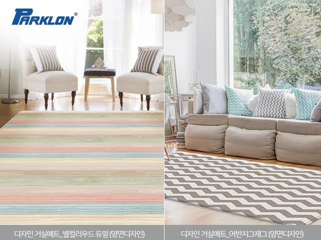 이번에 출시한 파크론의 디자인 거실매트는 모두 북유럽 스타일의 디자인을 적용한 제품으로 집안의 분위기에 맞추어 적용할 수 있는 ‘별컬러우드’와 ‘어반지그재그’이다.