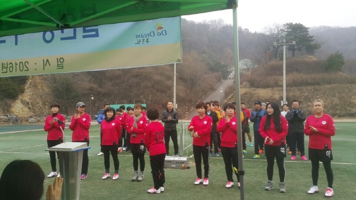 지난 15일 경기 동두천시 불현동 주민자치위원회에서는 동두천 종합운동장에서 지역내 여성 족구 동호회인 '불현 두드림 여성족구클럽' 창단식을 개최했다. 사진은 관계자들이 창단식을 진행하고 있는 모습.(사진제공=동두천시청)