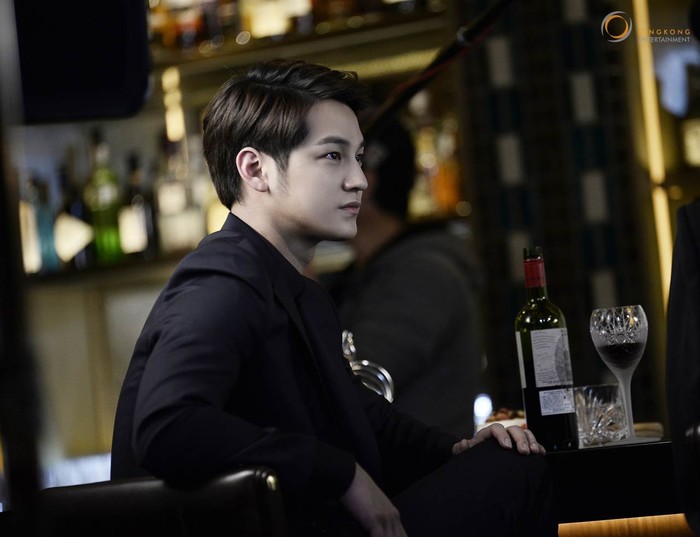 김범은 사진 속에서 와인 바 앞에 앉아 속내를 알 수 없는 오묘한 표정을 지으며 범접할 수 없는 카리스마를 발산하고있다.
