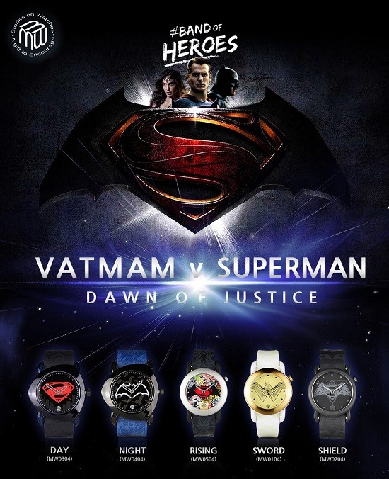 Band of Heroes 컬렉션 제품은 배트맨 대 슈퍼맨 : 저스티스의 시작 (Batman v Superman: Dawn of Justice) 영화를 모티브로 제작된 시계이다.