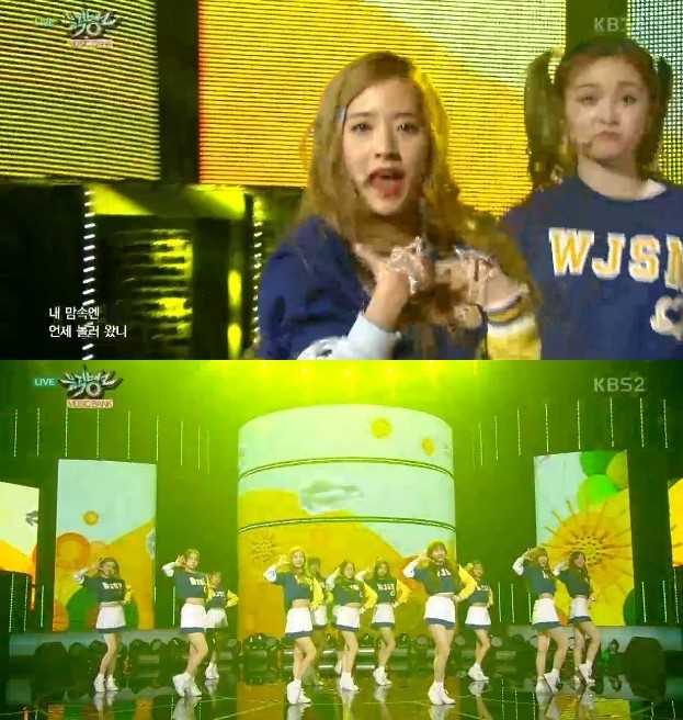 이날 우주소녀는 상큼함이 돋보이는 화려한 스쿨룩 의상을 입고 무대에 올랐다.
