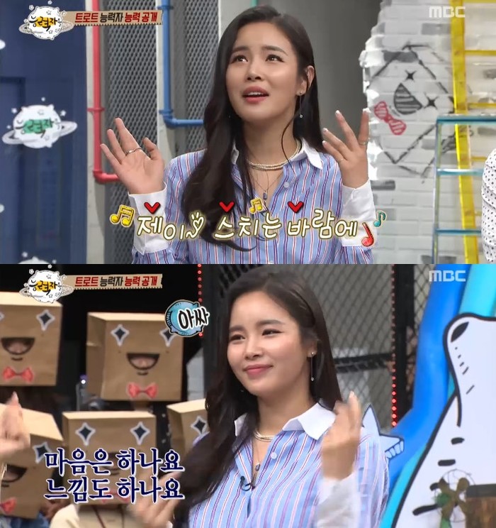 이날 ‘능력자들’에서는 트로트의 매력에 빠진 '트로트 능력자 편'이 그려졌다. 조정민은 개그우먼 신봉선과 특별 게스트로 등장했다.