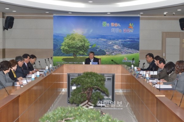 최근 경기 동두천시는 시청 상황실에서 2016년 제1차 지역사회보장협의체 전문위원회 위원 10명의 위촉식을 개최하고 수급권자 및 긴급지원대상자 적정성 등 8개 안건을 심의했다. 사진은 오세창 동두천시장(가운데)이 위원들과 회의를 진행하고 있는 모습.(사진제공=동두천시청)