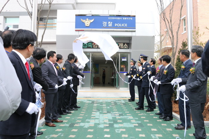 지난 22일 인천시 중부경찰서는 영종권 하늘도시 입주민이 날로 증가됨에 따라 운북ㆍ운남ㆍ중산동 3개동을 관할하는 신설 '영종지구대' 개소식을 개최했다. 사진은 행사 참가자들이 개소식을 진행하고 있는 모습.(사진제공=인천중부경찰서)