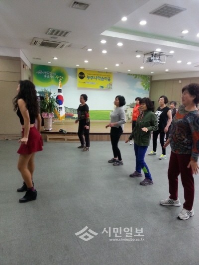 경기 수원시 팔달구 화서1동 주민자치센터에서는 지난 23일 주민 20여명이 참여한 가운데 최우리 다이어트 강사의 주민자치 프로그램댄스 공개 강의가 열렸다. 사진은 관계자들이 다이어트 댄스를 연습하는 모습.(사진제공=팔달구청)