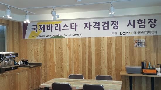 | ▲ 국제라틴커피협회 실기교육장 현수막사진 | ||