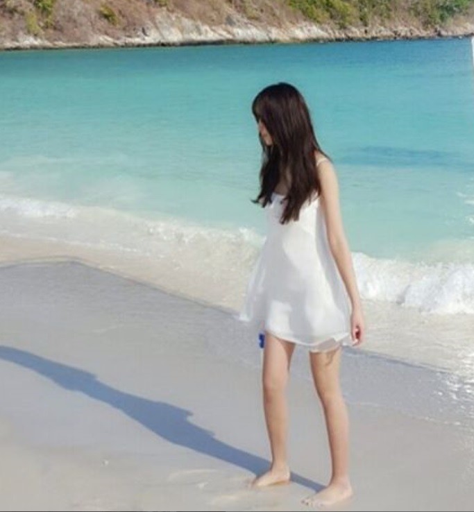 공개된 사진 속에는 화이트 원피스를 입고 촬영에 임하며 그가 바닷가를 거닐고 있는 모습이 담겨있다.