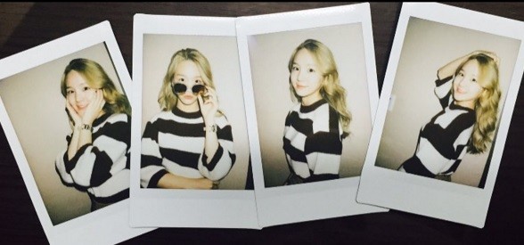 송소희는 사진 속에서 화려한 금발색의 머리스타일을 하고 다채로운 표정을 짓고있다.