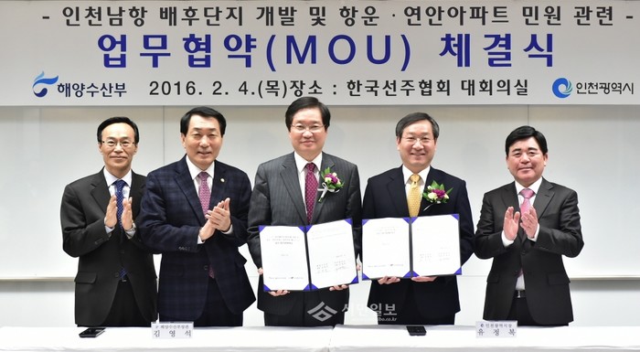 그 결과 지난 2일 인천남항 항만배후단지 2단계(아암물류 2단지) 개발과 항운·연안아파트 이주민원을 해소하기 위한 상생협력 업무협약(MOU)을 체결해 장기 민원과제였던 인천 중구 항운·연안아파트 이주 지원문제를 해소하기 위한 물꼬가 트였다.