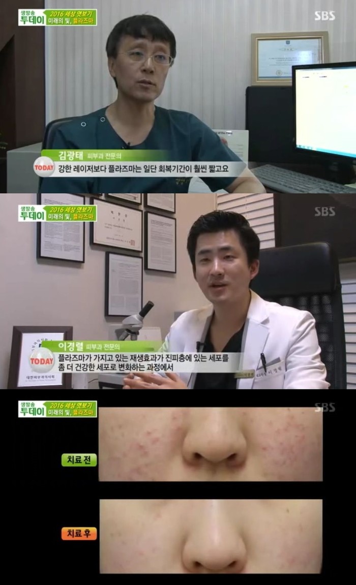 이에 이경렬 피부과 전문의는 “플라즈마는 세균을 죽이는 독성이 있어 여드름균을 죽이는데에 효과가 있다”며 “플라즈마가 가지고 있는 재생효과가 진피층에 있는 세포를 좀 더 건강한 세포로 변화하는 과정에서 콜라겐 생성 같은 것들이 증가해 주름을 개선할 수 있다”고 효능을 입증했다.
