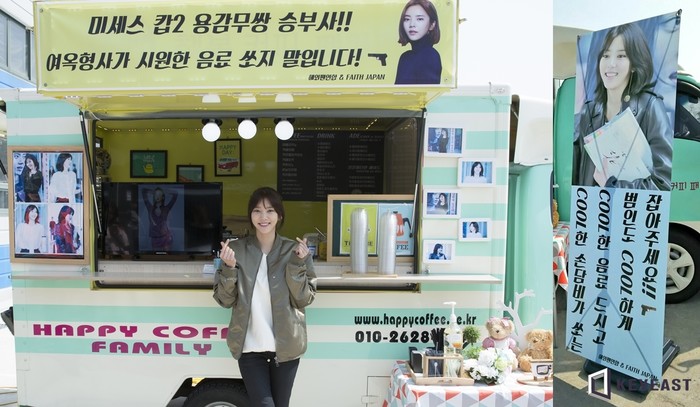 지난 달 30일 경기도 화성의 '미세스캅2' 세트장에는 손담비의 팬들이 준비한 커피차가 도착, 드라마 제작진과 출연진들을 응원했다. 커피차에는 “미세스캅2 용감무쌍 승부사! 여옥형사가 시원한 음료 쏘지 말입니다” “COOL한 손담비가 쏘는 COOL한 음료 드시고 범인도 COOL하게 잡아주세요!”라는 센스만점 문구가 새겨진 현수막과 배너가 더해져 손담비와 동료 배우들, 제작진의 기운을 북돋았다.