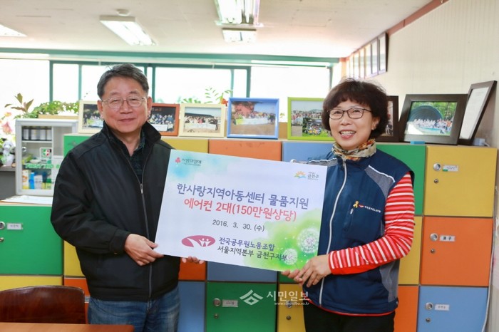 공무원노동조합, 한사랑아동센터에 에어컨 2대 기증