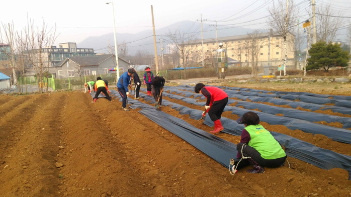 지난 30일 경기 동두천시 보산동 새마을남·녀지도자협의회 관계자들은 주민센터 옆에 위치한 2000㎡의 휴경지에서 불우이웃돕기 기금 마련을 위해 감자 심기를 진행했다.(사진제공=동두천시청)