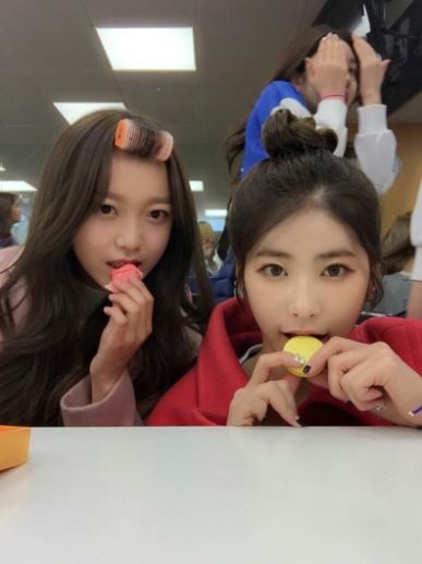 최근 공개된 사진 속 기희현은 쎈언니의 이미지를 잠시 내려두고 노란색 마카롱을 입에 대고 김소희와 함께 깜찍한 표정을 짓고 있다. 김소희 역시 앙증맞은 표정으로 카메라를 응시해 네티즌들의 시선을 사로잡았다.