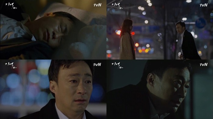 1일 tvN 금토 드라마 ‘기억’에서는 박태석(이성민 분)이 나은선(박진희 분)의 집에 들어가 잠을 자버리는 실수를 저질렀다. 이에 나은선의 연락을 받은 서영주(김지수 분)은 박태석의 모습에 실망했다.
