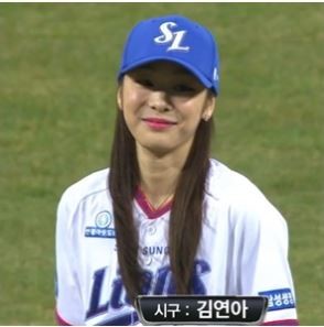 김연아는 시구를 던지기전 투수 정인욱의 지도를 받았다. 시구를 마친 김연아는 “라이온즈 파크에서 처음으로 시구하게 돼 영광“이라며 “삼성 라이온즈 파이팅"이라고 얘기했다.