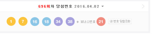 한편 제696회 로또복권 추첨에서는 '1, 7, 16, 18, 34, 38'이 1등 당첨번호로 뽑혔다.