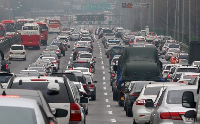 부슬비가 내린 3일 주말 나들이 차량의 복귀가 몰린 오후 시간 경부고속도로 상행선 서초 나들목 주변이 극심한 정체를 빚고 있다.