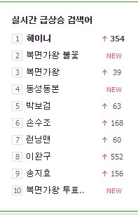 혜이니는 얼굴이 공개된 직후 포털사이트 검색어 1위.'복면가왕 불꽃'이 2위에 이름이 잇따라 오르며 관심을 집중시켰다.