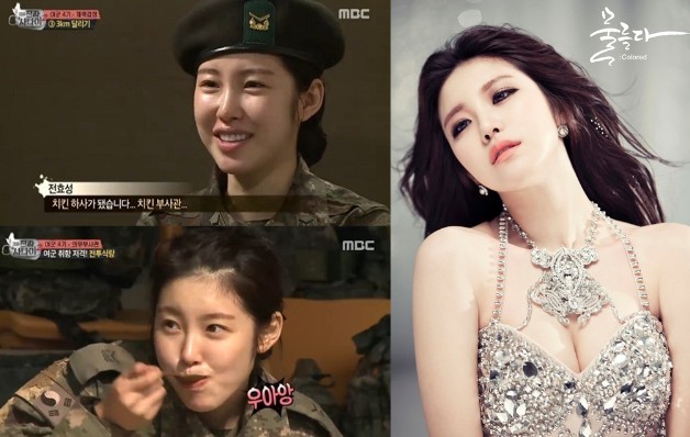 전효성은 지난 3일 MBC ‘진짜 사나이2’ 여군특집 4기에서 극한 장애물을 넘고 환자를 이송했다. 철조망은 물론 2m가량 되는 높은 담을 넘으며 조원들과 협동심을 과시했고, 훈련 후 군인들의 특식인 ‘군대리아’로 털털한 먹방을 선보이기도 했다.