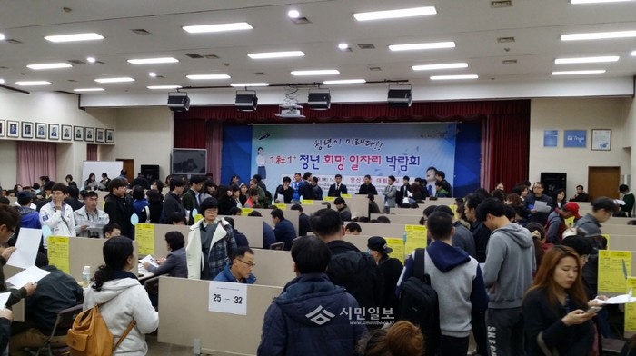 | ▲ 청년들이 안정된 일자리에서 일할 수 있도록 돕고자 마련된 일자리 박람회에서 구직활동을 하고 있는 참여자들의 모습. | ||