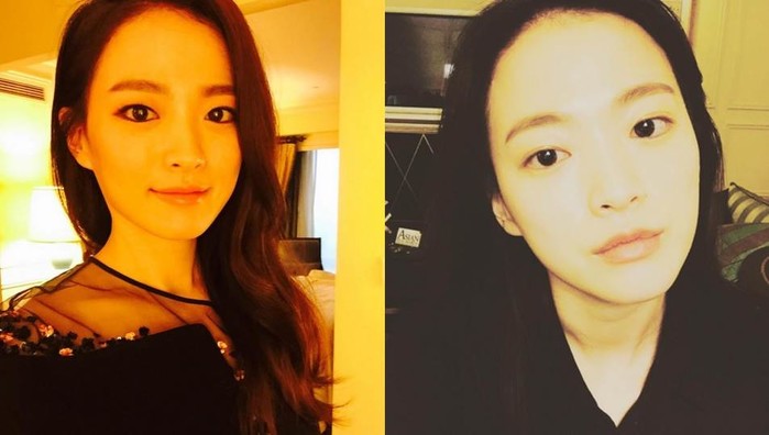 천우희는 왼쪽의 사진에서는 짙은 메이크업을 하고 매혹적인 이미지를 나타내고 있다.