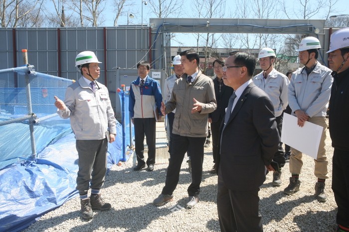 지난 4일 이해식 강동구청장은 '안전점검의 날'을 맞아 지역내 공공시설 건축현장과 재난위험시설에 직접 방문해 안전점검을 실시했다. 사진은 이 구청장(가운데)이 고덕4단지 재건축 현장에 방문해 관계자에게 이야기를 듣는 모습.(사진제공=강동구청)