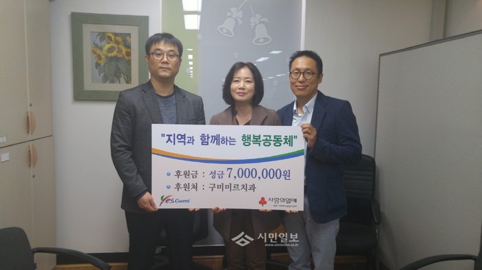 구미미르치과, 불우 이웃돕기 성금 700만원 시청에 기탁