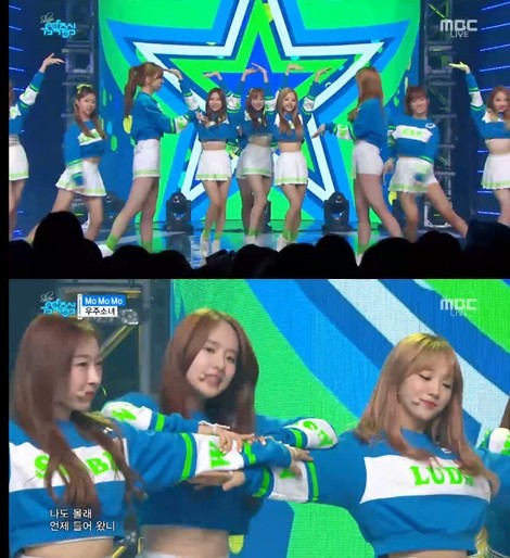 이날 우주소녀는 치어리더룩으로 등장한 후 깜찍한 매력이 가득한 ‘모모모’를 열창하며 한껏 봄 느낌의 풋풋함을 가득 채웠다.