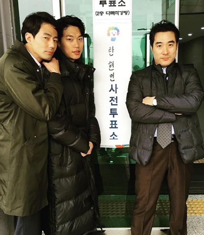 배우 조인성, 류준열, 배성우가 2016년 총선 사전 투표를 마친 것.