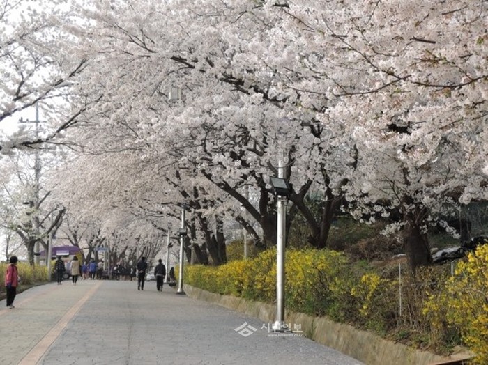강풀의 웹툰을 영화화한 <그대를 사랑합니다>의 촬영지이기도 하며, 40년 이상된 600여그루의 울창한 벚꽃나무이 군락을 이루고 있어 아름답다. 동산내 쉼터에는 무료 커피와 차를 제공하고 있으며, 테라스 쪽에서 벚꽃과 사진찍기에 안성맞춤이다. 그밖에도 다양한 이벤트와 공간들이 마련돼 있어 가족나들이로 좋은 장소다.