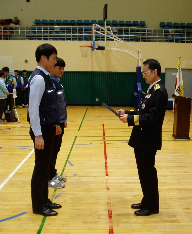 최근 경기 이천소방서는 서희청소년문화센터에서 '이천시민과 함께 하는 제1회 심폐소생술 경연대회'를 개최했다. 사진은 조승혁 서장이 대상을 받은 한국전기안전공사팀 관계자에게 표창을 수여하는 모습.(사진제공=이천소방서)