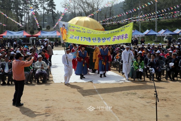 최근 전남 장흥군은 관산읍 천관산 잔디구장에서 군의 역사적 인물과 관광자원을 재조명한 문화축제로 제22회 관산읍민의 날 행사를 개최했다. 사진은 행사 참가자들이 고려 공예태후 등으로 분장하고 가장행렬을 하는 모습.(사진제공=장흥군청)