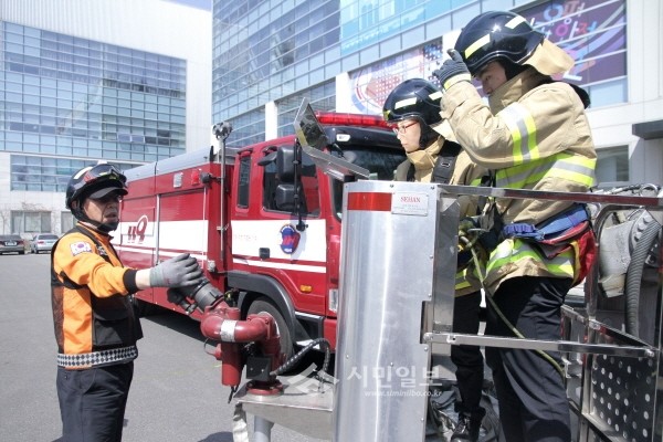 지난 11일 서울 은평소방서는 소방서에서 위급한 고층화재 현장상황 등에서 신속히 대응할 수 있도록 특장 소방차에 대한 조작 숙달훈련과 점검을 실시했다. 사진은 소방대원들이 훈련을 진행하는 모습.(사진제공=은평소방서)