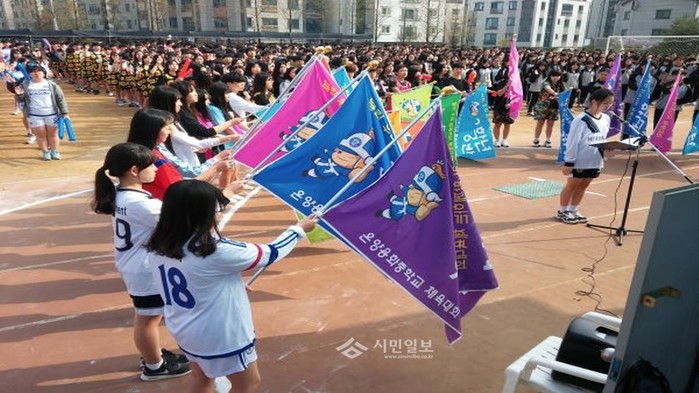 지난 12일 충남 아산시 온양용화중학교에서는 본교 운동장에서 제11회 용화누리 체육대회를 개최했다. 사진은 체육대회 개회식이 진행 중인 모습.(사진제공=아산교육지원청)