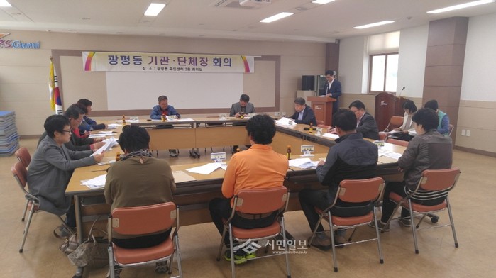 14일 경북 구미시 광평동 주민센터 2층 회의실에서 지역내 기관·단체장 16명이 참석한 가운데 시정홍보 및 정보교환 등 당면 현안에 대한 회의를 진행했다.(사진제공=구미시청)