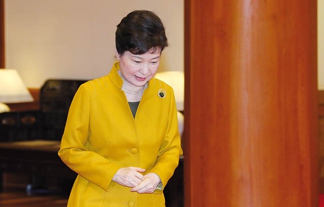 박근혜 대통령이 15일 오전 한-노르웨이 정상회담을 위해 청와대를 방문한 베르크 노르웨이 총리를 영접하기 위해 나오고 있다.