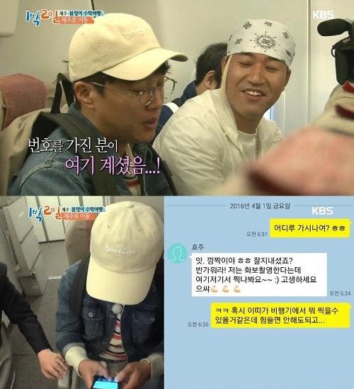 이날 방송에서 ‘1박 2일’ 멤버들은 제주도로 향하는 비행기 안에서 한효주와 마주치게 됐다. 한효주의 민낯을 본 멤버들은 “너무 예쁘다”고 극찬하며 “얼굴이 다르다”고까지 말해 눈길을 끌었다.