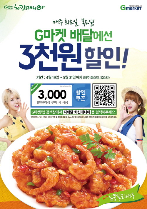 치킨매니아 마케팅 담당자는 “G배달을 통한 할인행사를 할인쿠폰을 활용한 주문의 비중이 높아 매출에도 좋은 영향을 미치고 있다”며 “향후에도 좋은 품질의 치킨을 편리하고 저렴하게 이용할 수 있는 이벤트를 통해 고객과의 접점을 넓혀나갈 계획이다”고 전했다.