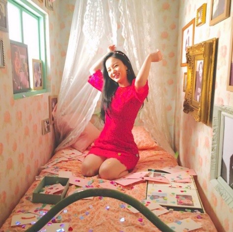 사진 속 이하이는 침대 위에서 핑크색상의 원피스를 입고 포즈를 취하고 있다. 특히 그의 깜찍하고 발랄한 포즈와 표정이 보는 이들의 시선을 사로잡았다.