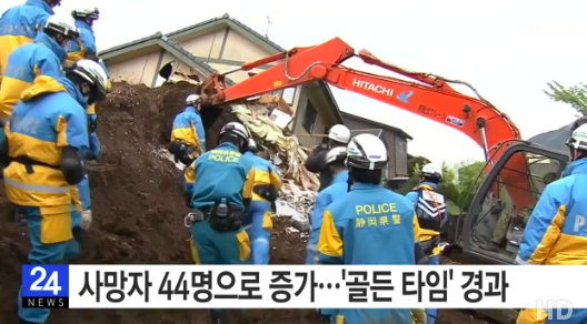 일본 구마모토 지진은 14일 첫 강진을 시작으로 620여차례의 여진이 발생하면서 19일 '골든타임'이 경과해 사망자는 44명으로 늘어났다.