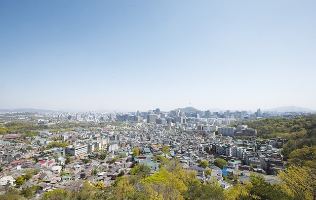 서울에 발령됐던 미세먼지(PM-10) 주의보가 33시간만에 해제된 24일 오후 서울 인왕산에서 바라본 서울 시내가 전날에 비해 선명한 모습을 보이고 있다.