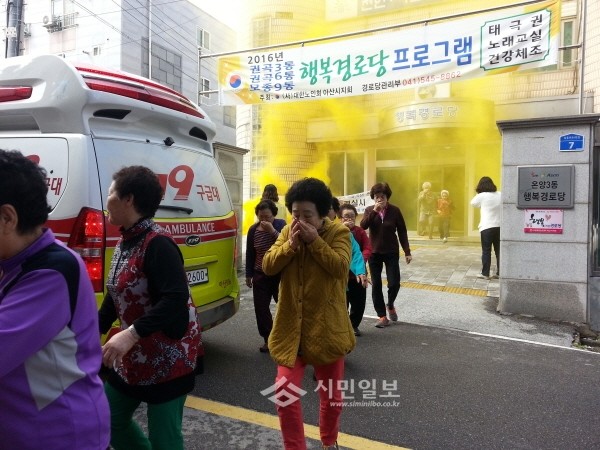 최근 충남 아산시는 4월 민방위의 날을 맞아 온양3동 소재 행복경로당에서 시민의 자발적 참여 확대 및 안전문화 확산을 위해 지역특성화 민방위 훈련을 실시했다. 사진은 훈련 참가자들이 대피 훈련을 하는 모습.(사진제공=아산시청)